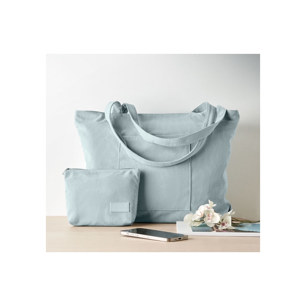 Artikel-Nr: OCBMO2875-66Große Einkaufs- / Strandtasche aus Kord-Polyester mit Reißverschluss. Frontfach und Innentasche. 220 g / m².
