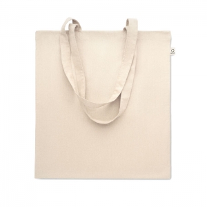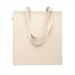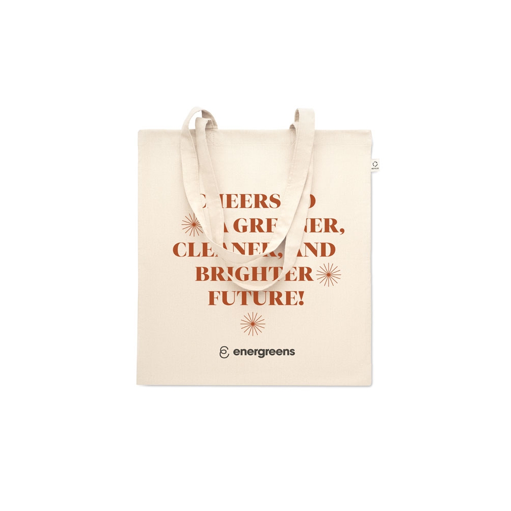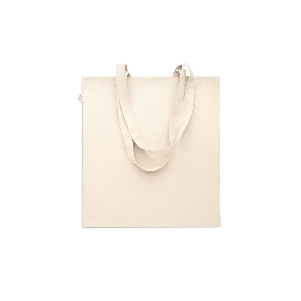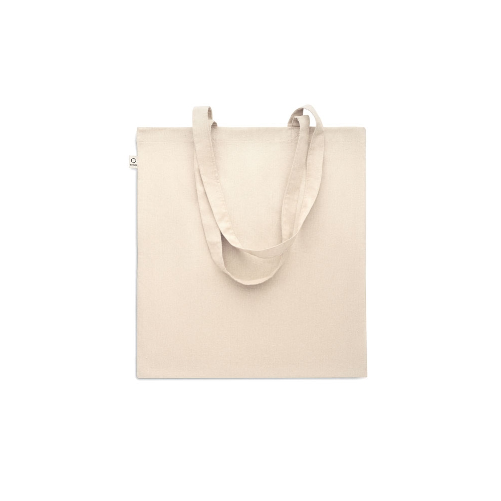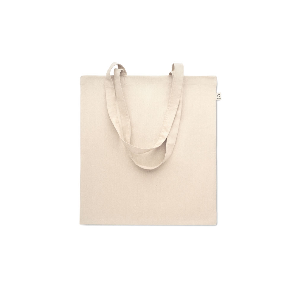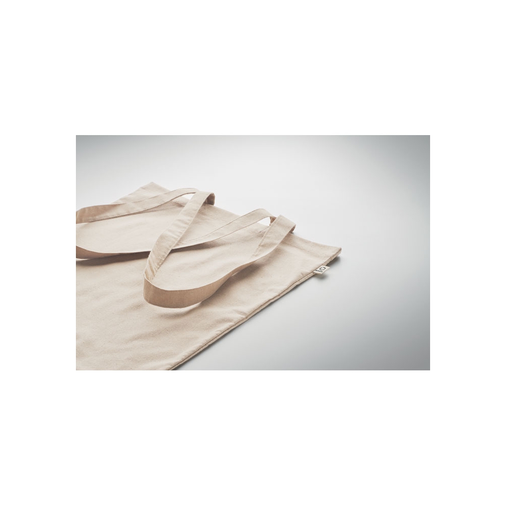 Artikel-Nr: OCBMO2301-13Einkaufstasche aus recycelter Post-Consumer-Baumwolle (70 % recycelte Baumwolle und 30 % RPET) mit langen Tragegriffen. 140 g / m². Artikel kann nach dem Bedrucken schrumpfen.