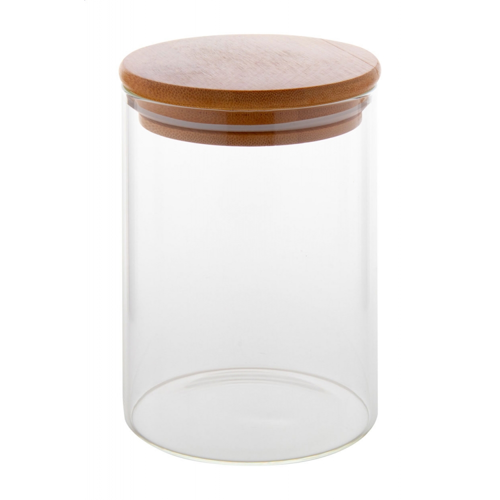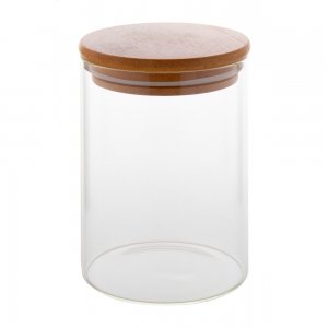 Artikel-Nr: AND800462Einmachglas aus Borosilikatglas mit Bambusdeckel. Füllmenge: 550 ml. Ideal zum Lagern von trockenen Lebensmitteln und anderen Zutaten.
