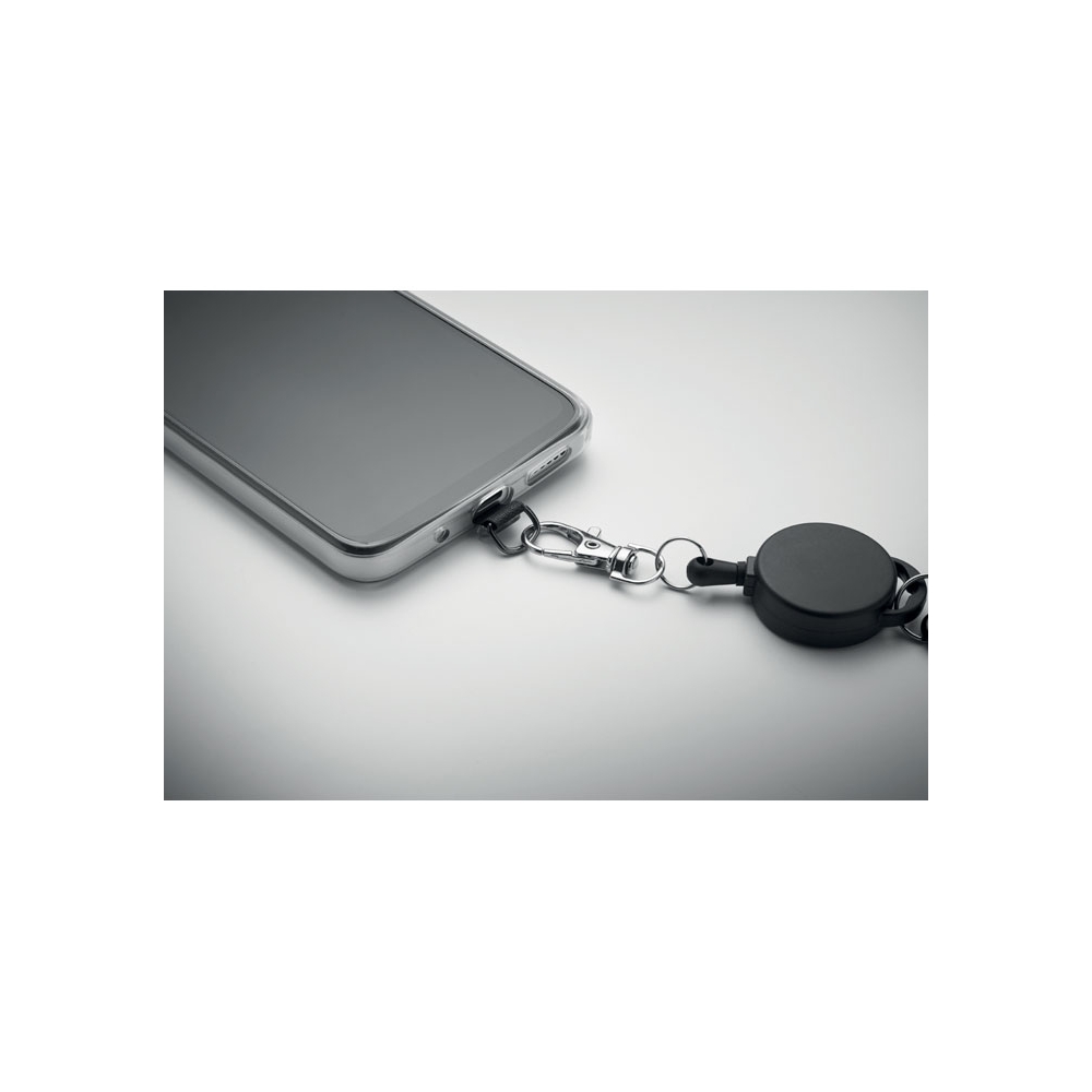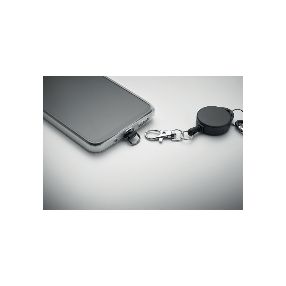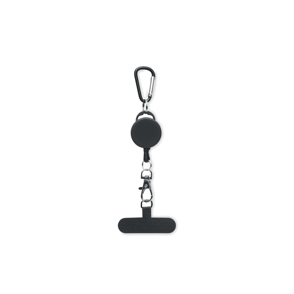 Artikel-Nr: OCBMO2630-03Einziehbarer Smartphone-Halter / Ausweishalter aus ABS mit Karabiner aus Aluminium. Mit Universalhalter. Der Karabiner ist NICHT als Sicherung beim Klettern geeignet.