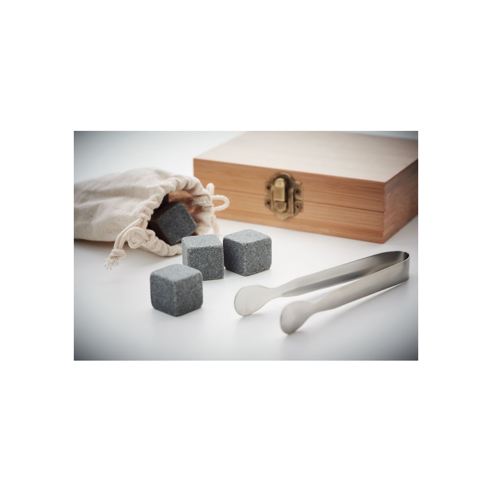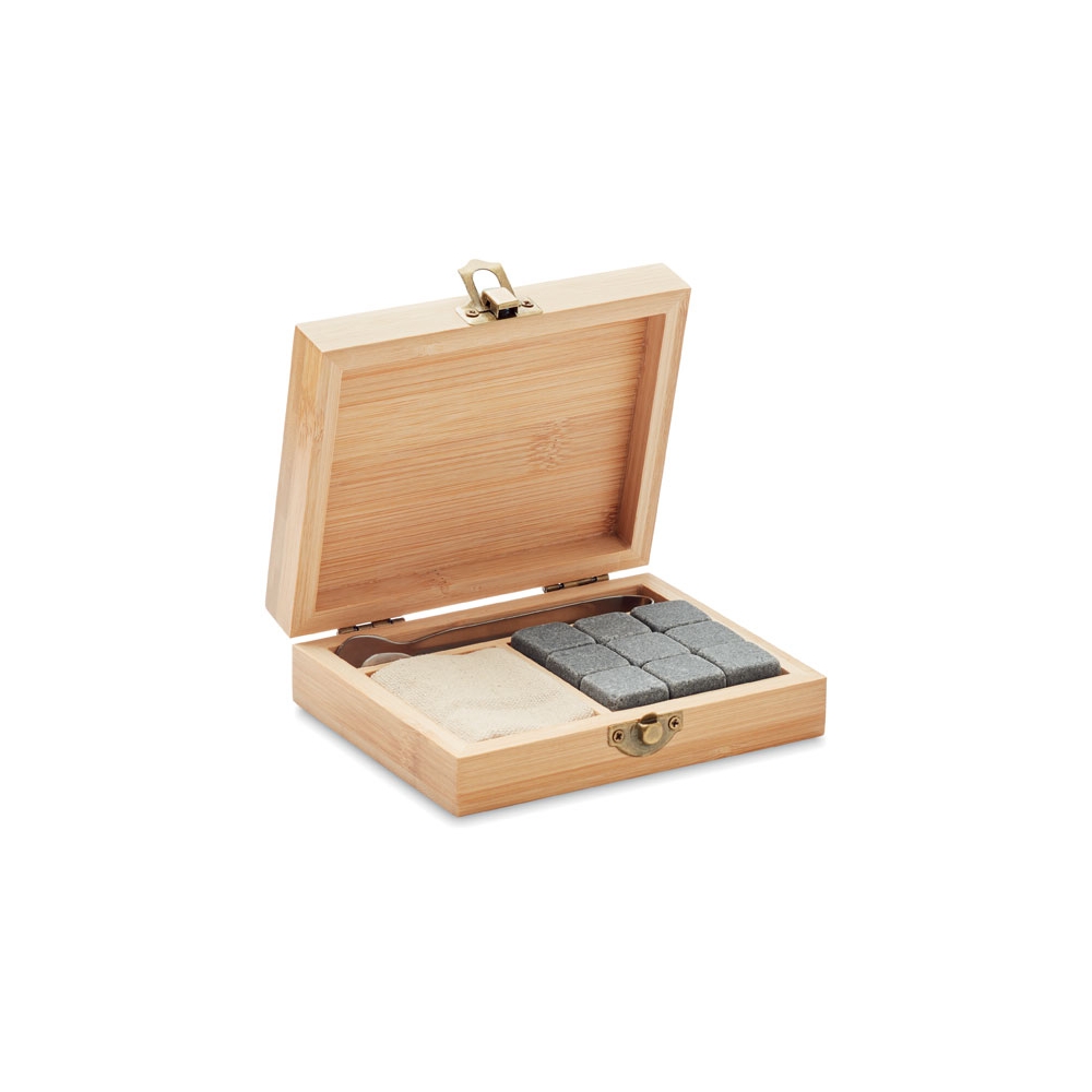 Artikel-Nr: OCBMO9942-40Eiswürfel-Set in Bambus-Geschenkbox. Mit Eiszange und 9 wiederverwendbaren Eiswürfen aus Stein im Baumwolle-Säckchen. Da Bambus ein natürliches Material ist, können Farbton und Maße pro Artikel variieren. Dies kann zu Abweichungen im Ergebnis der Veredlung führen.