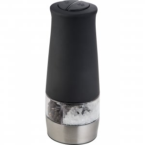 Artikel-Nr: MCM8033703Elektrische Salz- und Pfeffermühle aus Edelstahl, gummiert. Die beiden Kompartments lassen sich durch die zwei Druckknöpfe separat bedienen. Die Werbung wird direkt auf die Mühle gelasert.
