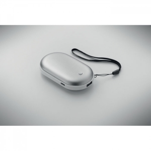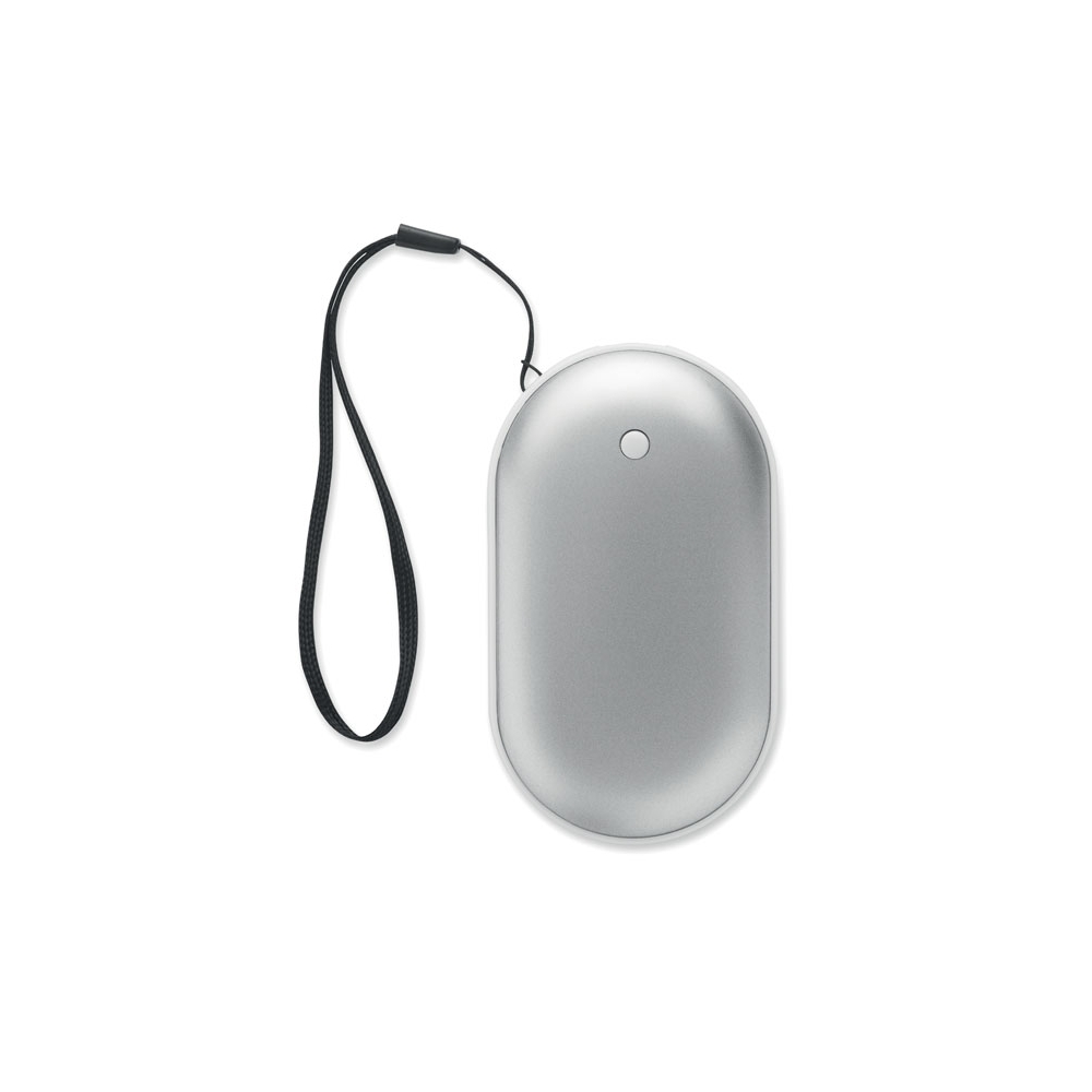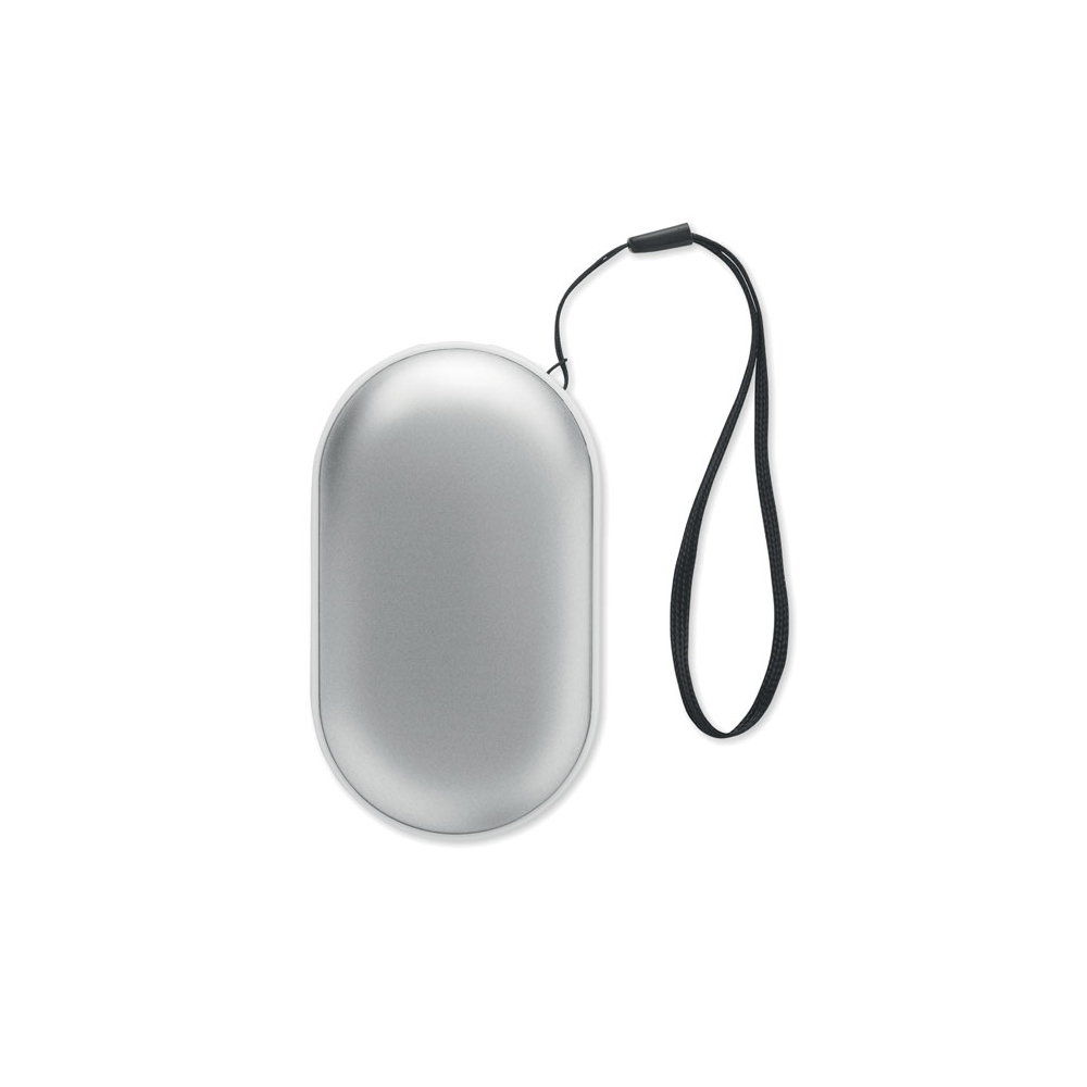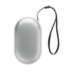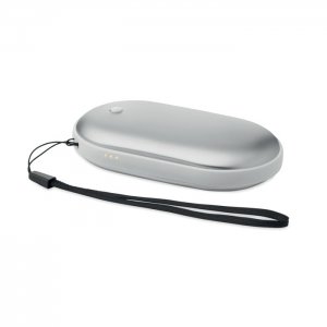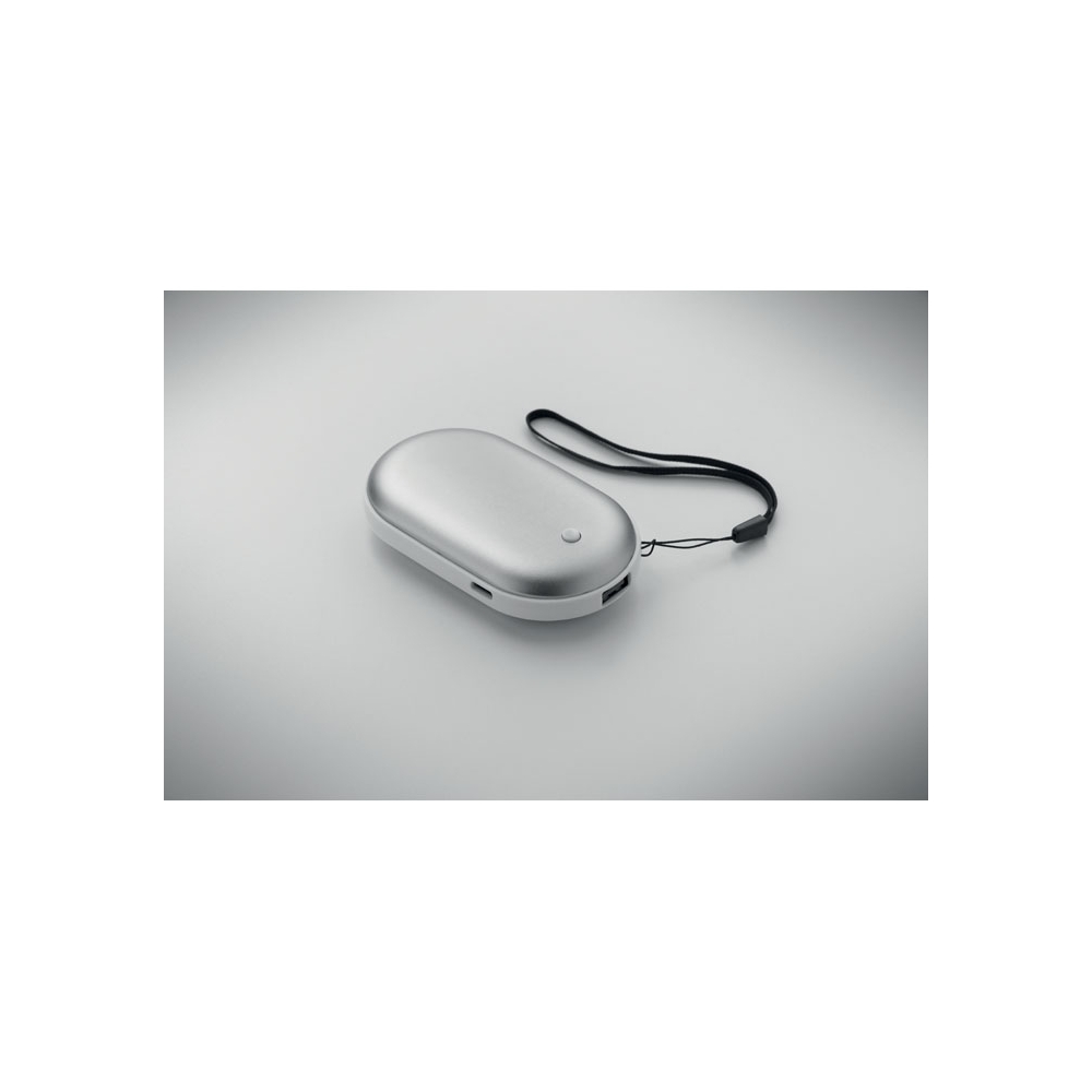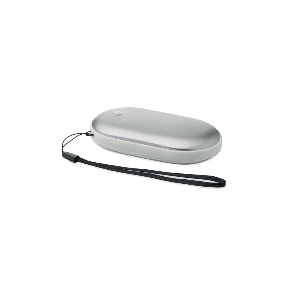 Artikel-Nr: OCBMO2777-16Elektrischer Handwärmer. Aluminium. 3 Heizstufen (45, 50, 55 °C). Beidseitige Heizung. Inkl. integrierte 5000-mAh Powerbank. Inkl. USB-C-Ein- / Ausgang, USB-A- und DC-5V/2A-Ausgang sowie Ladekabel.