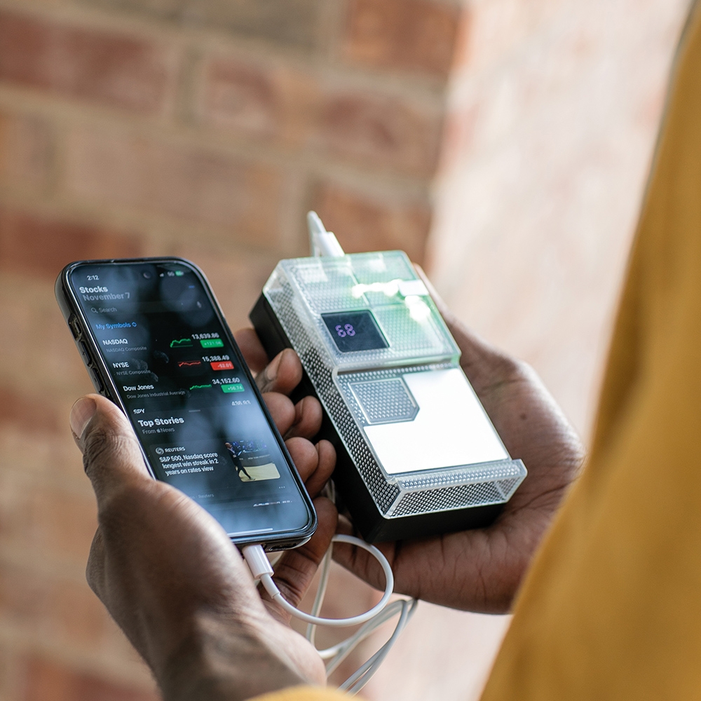 Elexa Powerbank aus rABS mit 20000 mAh. Lädt auch Laptops. LED-Anzeige