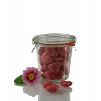 Artikel-Nr: A276G000341Ein herzlicher Gruß für Kunden und Geschäftspartner ! In einem klassischen Weckglas finden sich leckere Dinkel Herzen, dragiert mit weisser Schokolade und verfeinert mit Erdbeer - und Magermilch- Joghurt. Werbemöglichkeit: Banderole / Etikett. Inhalt: Original Weckglas 290 ml. / Erdbeer-Dinkel Herzen 100 g.