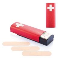 Artikel-Nr: W460P265134Magnetische Erste Hilfe Pflasterbox, Box aus Kunststoff, Schieber aus eloxiertem Aluminium, in rot mit weißem Kreuz, mit 2 Magneten, inkl. 15 Pflastern, CE geprüft, nach ISO Standard, geschütztes Design. Farbe/n: grau. Maße: 9,5 x 3,7 x 2 mm.