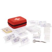 35tlg., inkl. Verbandsmaterial, medizinische Handschuhe, Schere, Notdecken, Branddecken, absorbierender Tupfer und Instruktionsmaterial in EVA Beutel, Inhalt gemäß DIN13164, geschütztes Design. Maße: 17,5 x 24,5 x 9,5 mm.