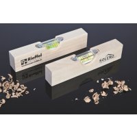 Bestseller Wasserwaage aus Eschenholz mit integrierter Horizontallibelle. Preisgünstiges Naturprodukt aus nachwachsendem Rohstoff mit großer Werbefläche.