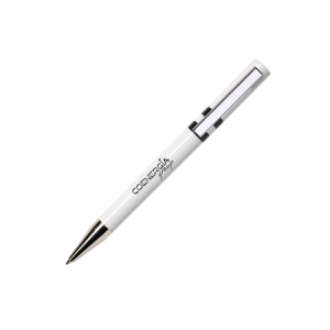 Artikel-Nr: PRM127160_15ETHIC ET900 B Kugelschreiber Maxema, glänzende Flächen, deckende Farben, Gehäuse, Kappe und Mittelring in Weiß, Ringe und Top farbig, Clip aus Metall, Spitze verchromt, blauschreibend