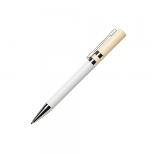 Artikel-Nr: PRM127161_17BETHIC ET900 BC Kugelschreiber Maxema, glänzende Flächen, deckende Farben, Gehäuse und Top in Weiß, Clip aus Metall, Kappe und Mittelring farbig, Ringe und Spitze verchromt, blauschreibend