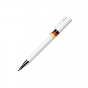 Artikel-Nr: PRM127167_15ETHIC ET900 FLAG Kugelschreiber Maxema, glänzende Flächen, Farbe weiß, Ringe dreifarbig, Clip aus Metall, Spitze verchromt, blauschreibend