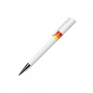 Artikel-Nr: PRM127166_06ETHIC ET900 MULTICOLOUR Kugelschreiber Maxema, glänzende Flächen, deckende Farben, Gehäuse und Kappe in Weiß, Clip aus Metall, Ringe dreifarbig, Spitze verchromt, blauschreibend