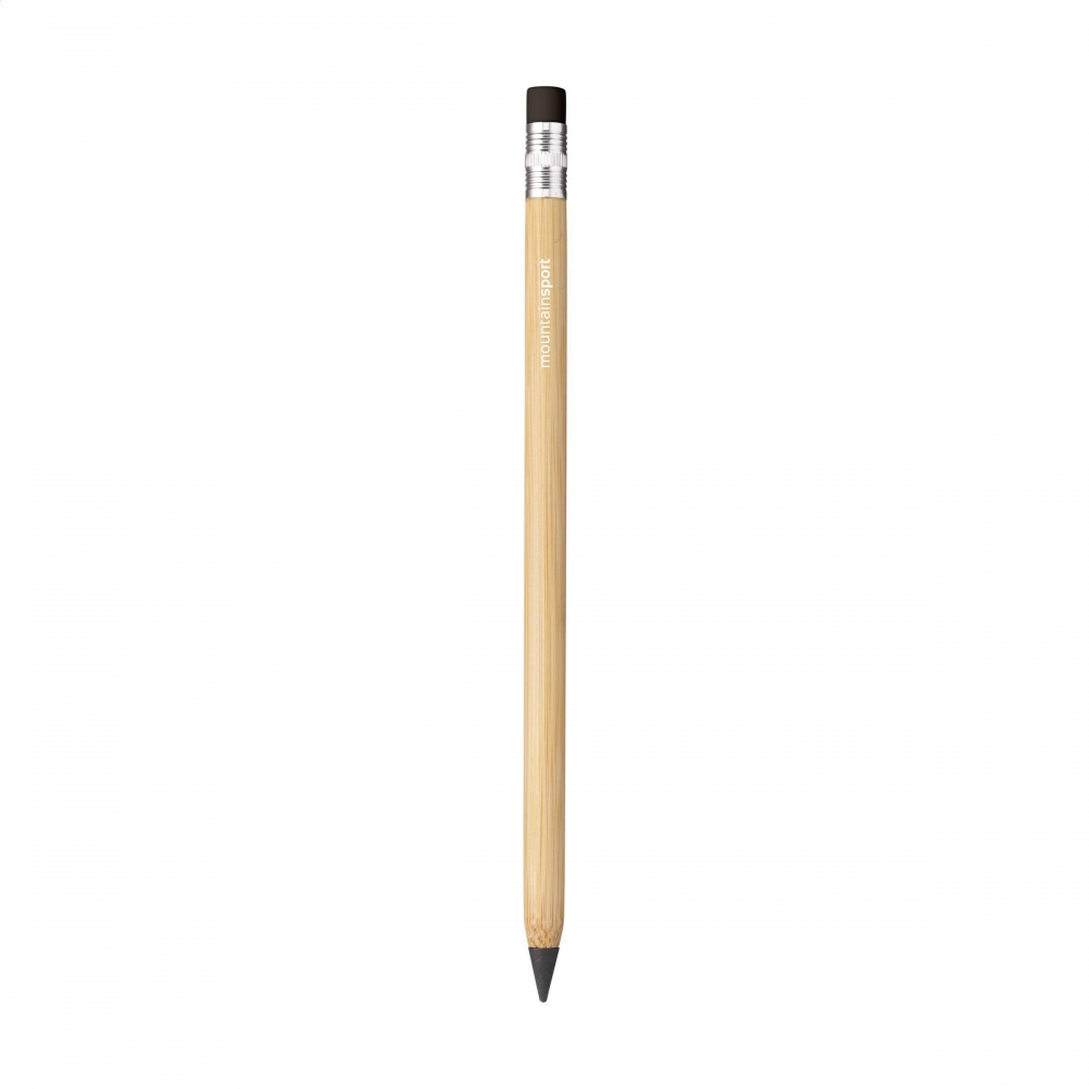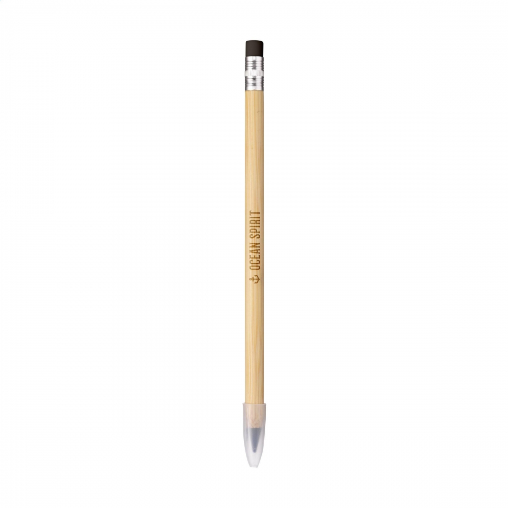 Artikel-Nr: CLP262331-001Bambus-Bleistift, der den traditionellen Bleistift ersetzt. Er sieht aus wie ein herkömmlicher Bleistift, schreibt wie ein herkömmlicher Bleistift und kann auch ausradiert werden. Dieser Bleistift hat allerdings eine Graphitspitze mit einer Schreiblänge von bis zu ca. 20.000 Metern. Die Spitze muss nicht angespitzt werden und nutzt sich sehr langsam ab. Dadurch hält der Stift bis zu 100 Mal länger als ein herkömmlicher Bleistift. Mit Radiergummi auf der Oberseite und einer praktischen Schutzkappe.
