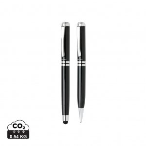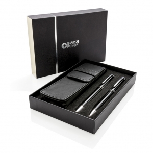 Artikel-Nr: XND610430Hochwertiges Schreibset aus Kupfer bestehend aus einem Rollerball mit Stylus und einem Kugelschreiber je mit Swiss Peak Logo. Verpackt im PU Etui und einer Geschenkbox. Blau schreibend.