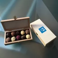 Exklusive Trüffelmischung - edle Pralinen mit Logo auf der Holzbox