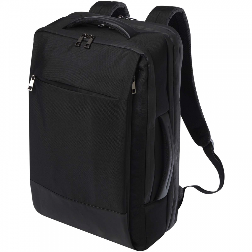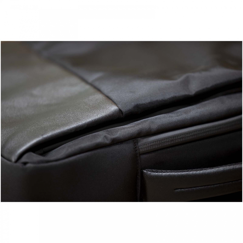 Artikel-Nr: CPO13005790Der erweiterbare und robuste GRS-zertifizierte Expedition Pro Laptop-Rucksack ist die ultimative Wahl für Vielreisende. Der Rucksack hat ein erweitertes Fassungsvermögen, das dem eines Handgepäcktrolleys entspricht, und besteht aus wasserabweisendem RPET, kombiniert mit hochwertigen PU Kunststoff-Elementen und RPET-Futter. Der Rucksack verfügt über ein spezielles Fach für einen 17"-Laptop und ein Tablet, ein erweiterbares Fach im Trolley-Stil für die Aufbewahrung von Kleidung, ein großes, integriertes, auslaufsicheres Fach für Kosmetikartikel und ein geräumiges Vorderfach mit mehreren Organisationsfächern innen und außen. Die gepolsterten und verstellbaren Schultergurte, das integrierte Kartenfach, die Sonnenbrillenschlaufe, die geformte Netzrückseite sowie der gepolsterte Tragegriff sorgen für maximalen Tragekomfort und Bequemlichkeit. Fassungsvermögen: 35 Liter. PVC frei.