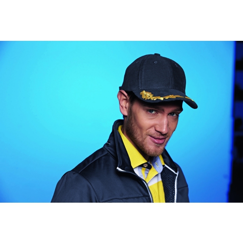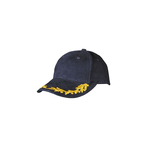 Extravagantes Cap mit Eichenlaub-Stickerei in Lurex auf dem Schild
