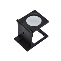 Klappbarer Fadenzähler aus schwarzem Metall mit Mikrolampe. Vergrösserungsfaktor 5. Skala in cm und Zoll. Lieferung mit Etui. 2 batterien CR927 inklusive.