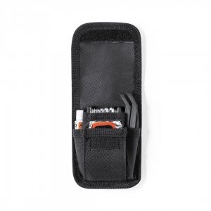 Artikel-Nr: KTO11218002000Komplettes Fahrradreparaturset mit 14 Zubehörteilen. Verpackt in einer strapazierfähigen 600D-Polyestertasche mit Klettverschluss. Inklusive Reifenmontiergerät, Multi-Tool und Pannenhilfe.