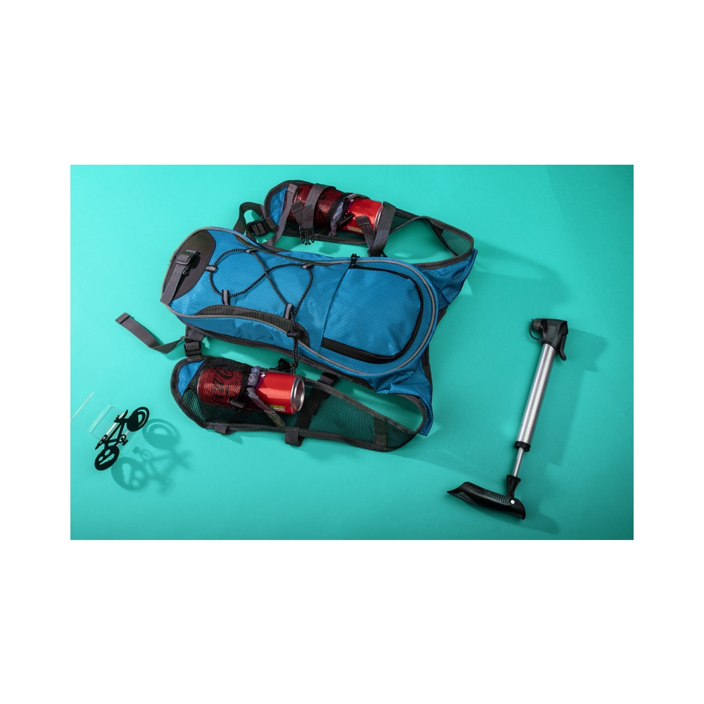 Fahrradrucksack mit Platz für eine Flasche. Es verfügt über Netzhosenträger, die für Atmungsaktivität sorgen, einen wasserdichten Reißverschluss und einen elastischen Riemen an der Vorderwand. Darüber hinaus ist der Rucksack mit zwei Brustgurten für mehr Stabilität und Komfort ausgestattet. Der Rucksack ist aus 420D Polyester hergestellt. Kapazität des Rucksacks ca. 3,2 L. Produkt lässt sich mittels Sticken veredeln - individuelle Berechnung.