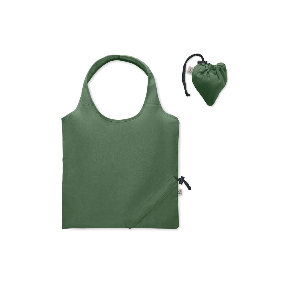 Artikel-Nr: OCBMO2487-60Faltbare Einkaufstasche aus recycelter Pre-Consumer-Baumwolle (70% recycelte Baumwolle und 30% RPET). 140 g / m². Artikel kann nach dem Bedrucken schrumpfen.
