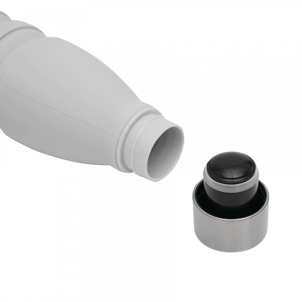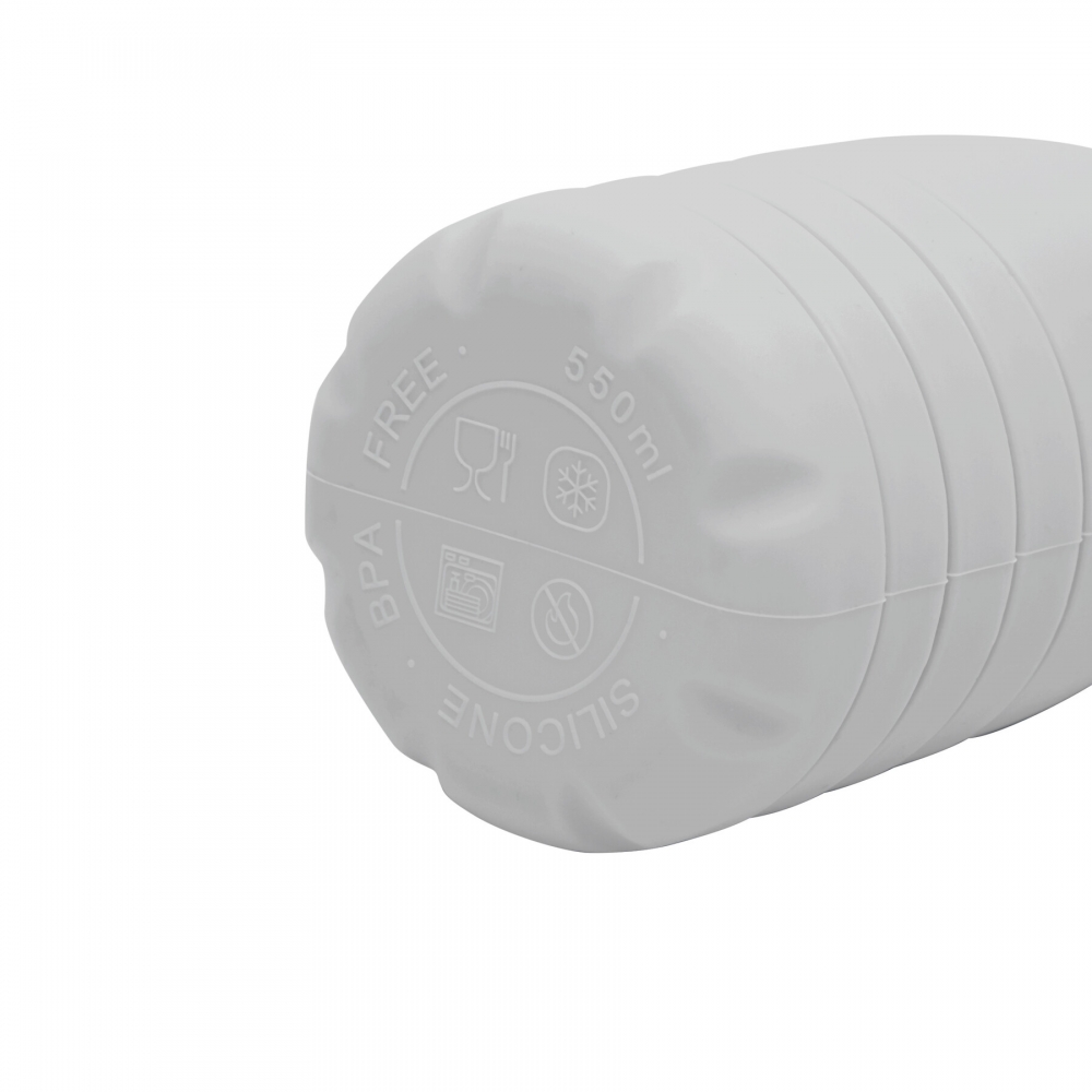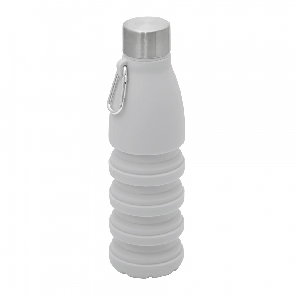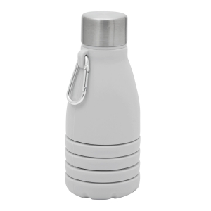 Artikel-Nr: INP56-0603193Faltbare Trinkflasche BIG GETS SMALL: aus Silikon, Edelstahl-Deckel mit sicherem Schraubverschluss und Silikon-Dichtring, mit Karabinerhaken (der Karabiner ist NICHT als Sicherung beim Klettern geeignet), die Flasche lässt sich um ca. 8 cm auseinanderziehen, Füllmenge ca. 550 ml, in Box