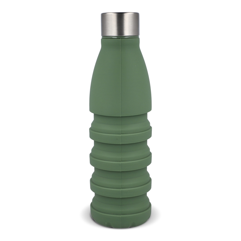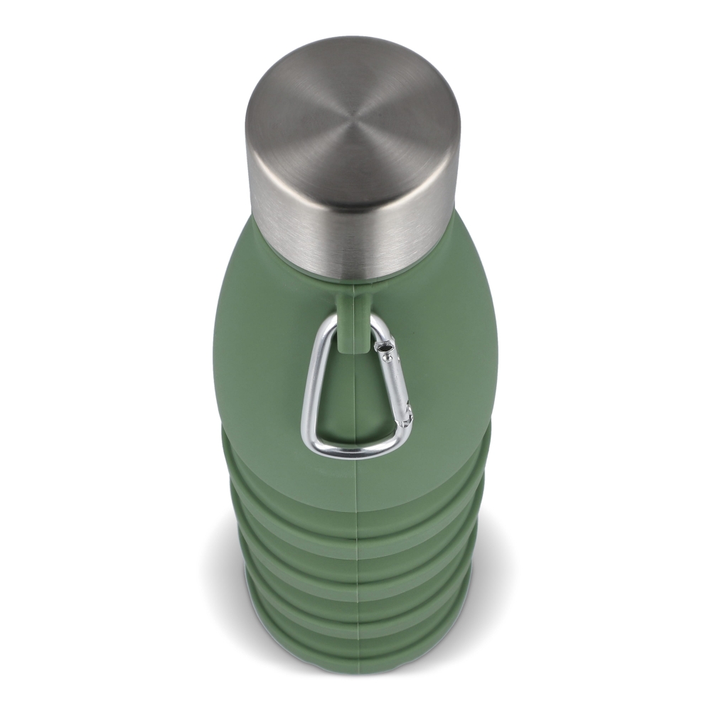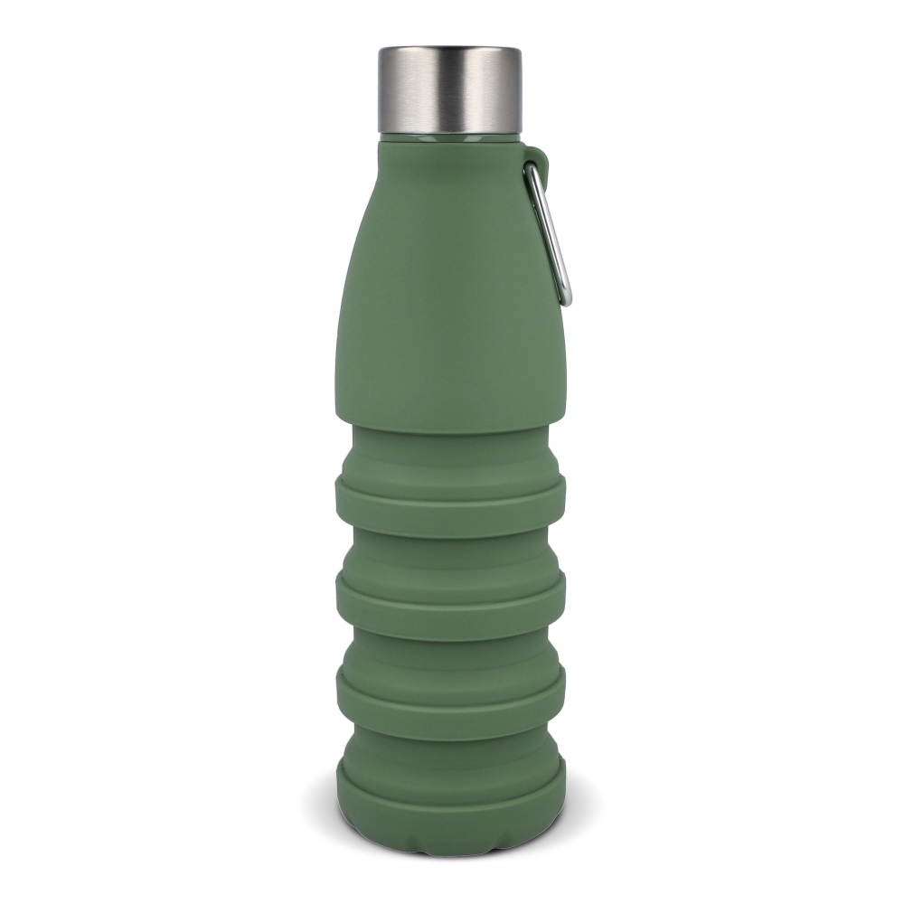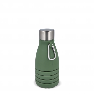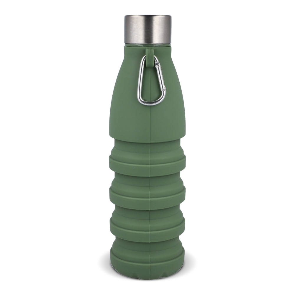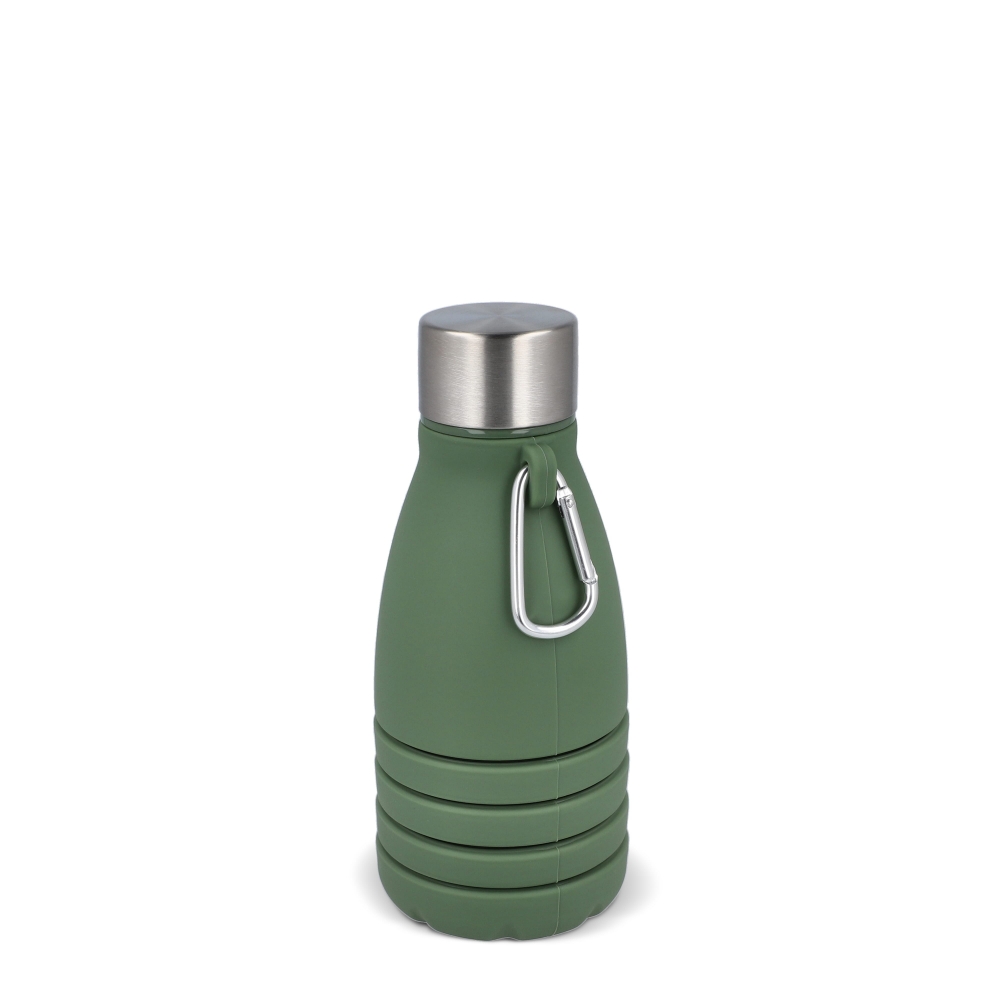 Artikel-Nr: ART98720N0043Faltbare Wasserflasche aus Silikon mit Karabinerhaken zum Befestigen an Ihrer Tasche. Sie fasst 550 ml Flüssigkeit.