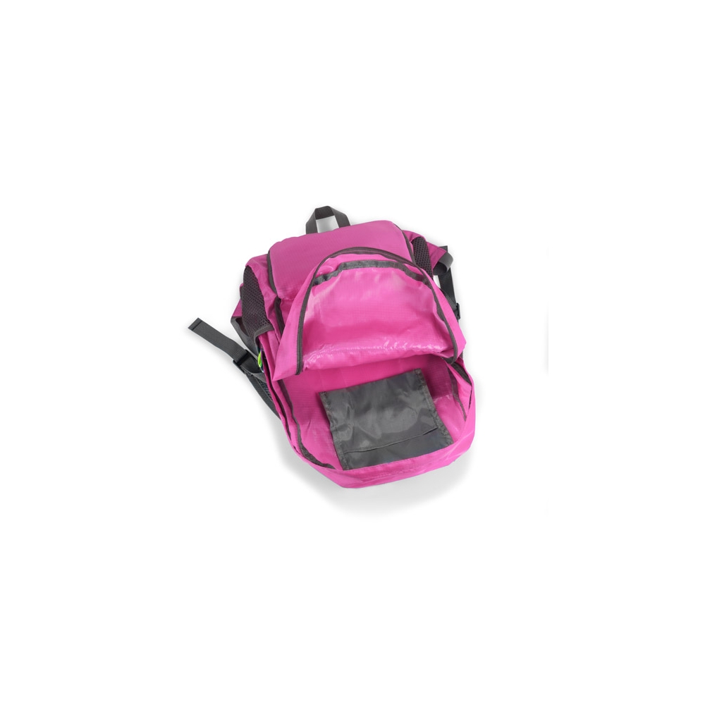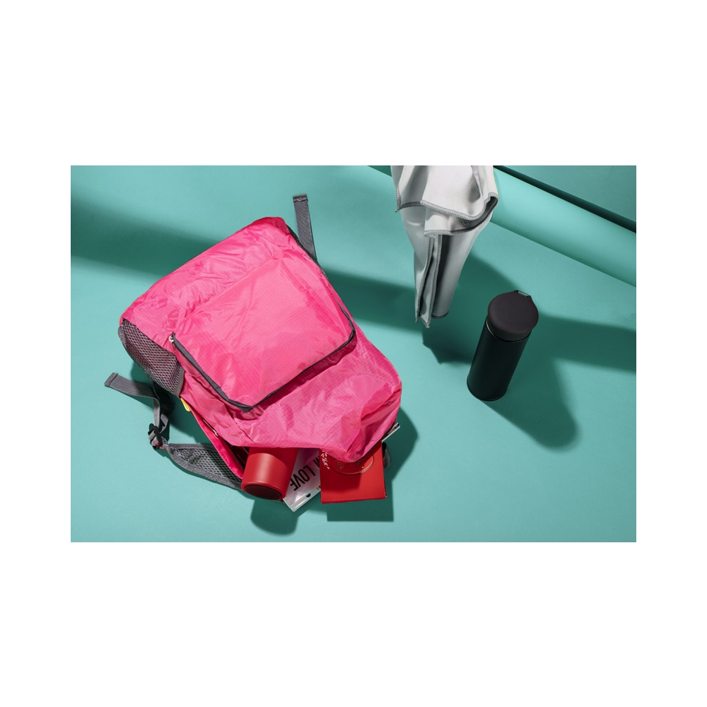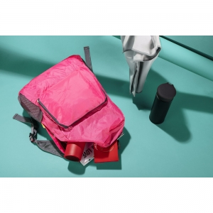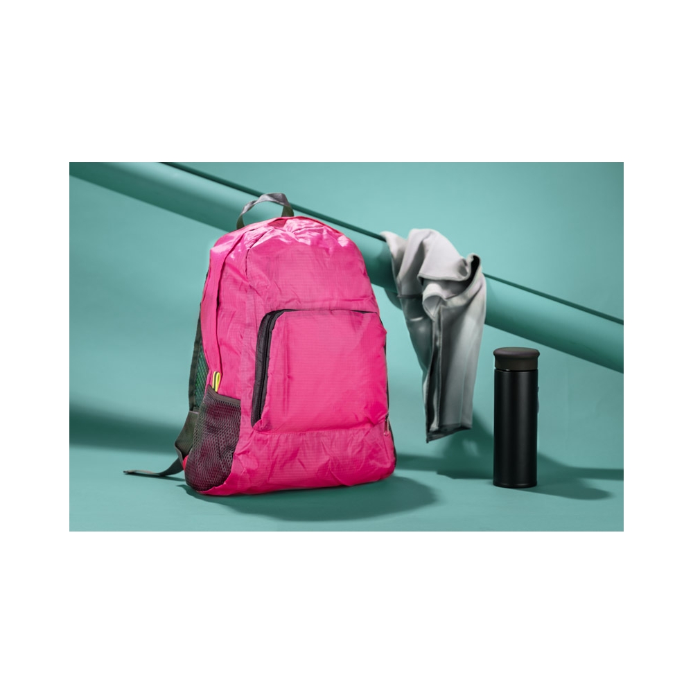 Artikel-Nr: ARD20223-21Funktioneller Rucksack, der klein zusammengeklappt werden kann. Es hat eine Innentasche und drei Außentaschen - eine mit Reißverschluss und zwei Netztaschen. Der Rucksack ist aus Polyester hergestellt.