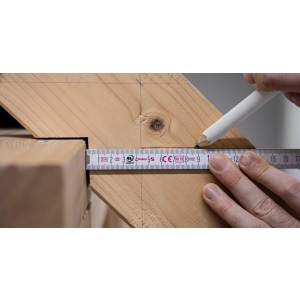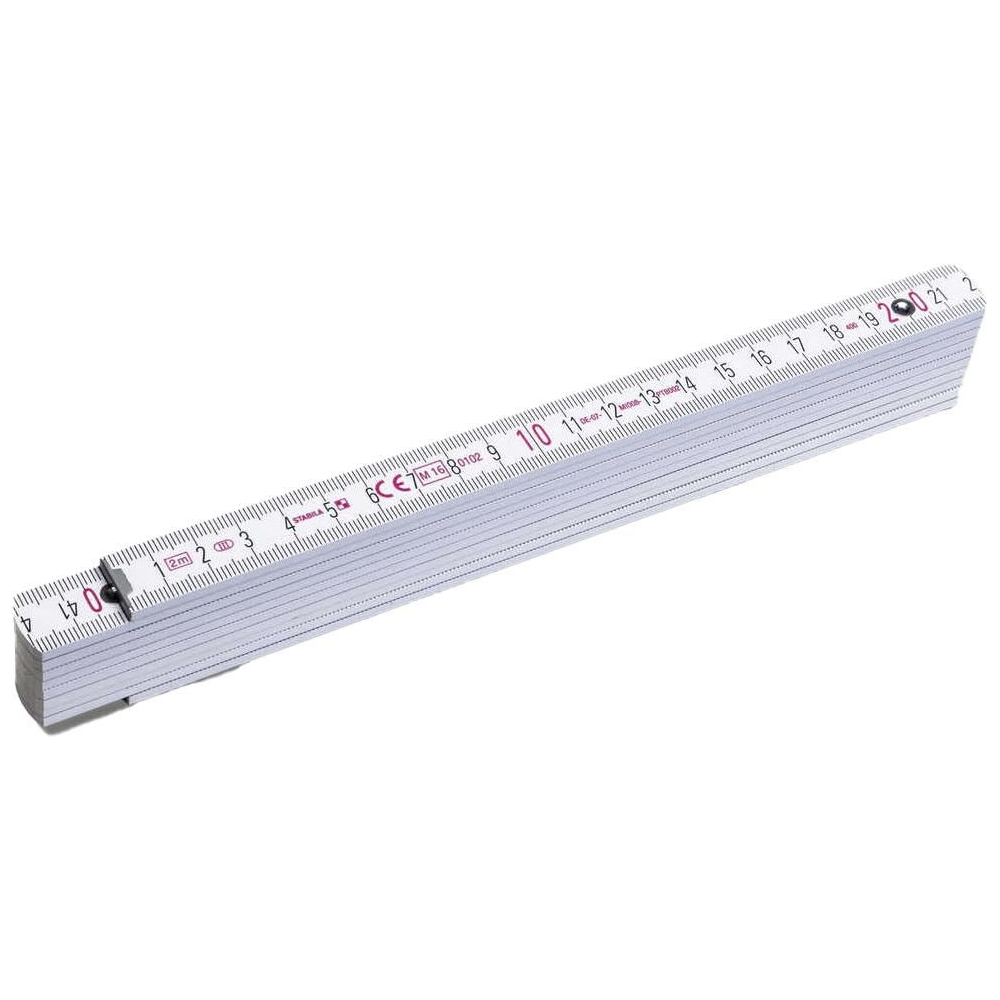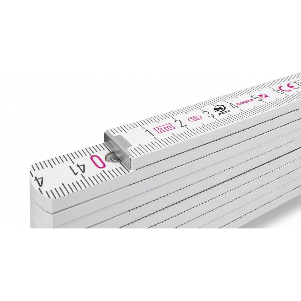 Artikel-Nr: GIV25649002Faltbares Holzlineal von Stabila mit einer Gesamtlänge von 2 Metern. Die Skala ist in cm. Das Lineal hat eine stossfeste Beschichtung und extra starke, rostfreie Stahlscharniere. Mit integriertem Winkelschema. PEFC-Zertifikat, Genauigkeitsklasse 3.