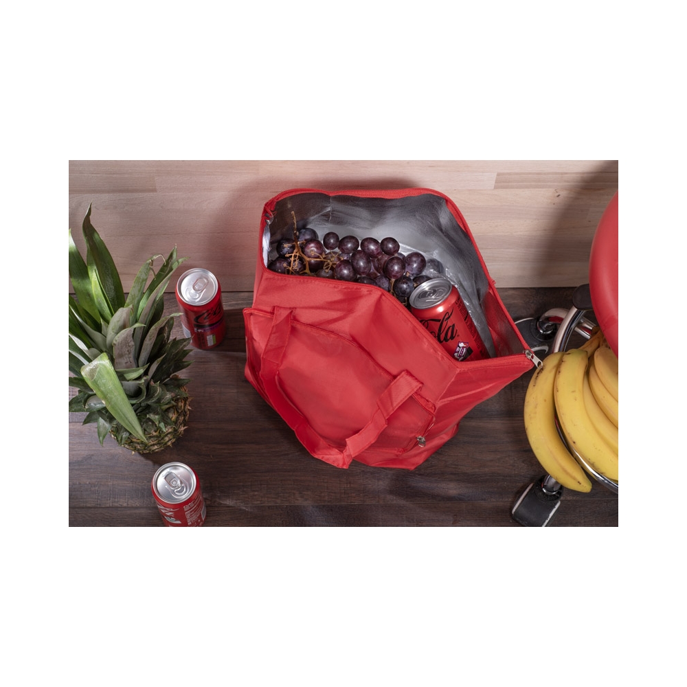 Artikel-Nr: ARD20809-04PINO ist eine praktische faltbare Tasche mit einer thermoisolierenden Schicht, ideal für Einkäufe, den Strand oder Picknicks. Sie hat lange Henkel, die für angenehmen Tragekomfort sorgen. Dank der Thermoisolierung hält sie die Temperatur der gelagerten Produkte. Sie ist mit einem Reißverschluss versehen und nimmt nach dem Falten wenig Platz ein.