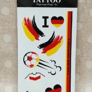 Wir produzieren Qualitäts-Fan-Schminke und Fan-Tattos in Deutschlandfarben. Sollten Sie andere Länderfarben und Formen wünschen, fragen Sie einfach bei uns an.