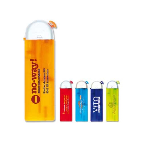 Artikel-Nr: W57590664Elektronisches, nachfüllbares Feuerzeug in gefrosteten Farben mit runder, silberner Kappe. Mit Kindersicherung. Maße: 80 x 24 x 10 mm. Farbe/n: Gefrostet Blau, Gefrostet Hellgrün, Gefrostet Orange, Gefrostet Rot, Gefrostet Violett. Werbeanbringung: 56 x 12 mm.