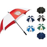 Bicolor Strandschirm aus Polyester (hydrophob imprägniert), mattierter Aluminium-Stab, Speichengestell exklusiver, gerader Griff aus Kunststoff.