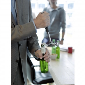 Artikel-Nr: GIV3127032Flaschenöffner aus Metall in Form eines Hammers, inklusive Gummi-Griffzone und Kapselheber.