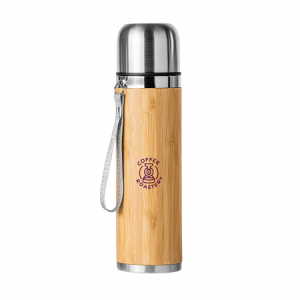 Artikel-Nr: PRM641009_20Doppelwandige Thermoskanne aus 304 Stahl mit Bambus. Inhalt 420 ml. Inklusive Tragegurt. Eine elegante und komplette Thermoskanne.