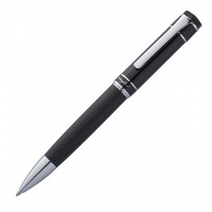 Artikel-Nr: MCMF21003Luxuriöser Drehkugelschreiber der Marke Ferraghini mit schwarzer Lackoberfläche und Flechtmuster in Stoff mit vereinzelten Chromakzenten. Aufbewahrt wird der blau schreibende Metallkugelschreiber (Großraummine) in einem mit Velours ausgelegtem Kunstlederetui mit Magnetverschluss. Ihre Werbung lasern wir auf den Kugelschreiber neben dem Clip.