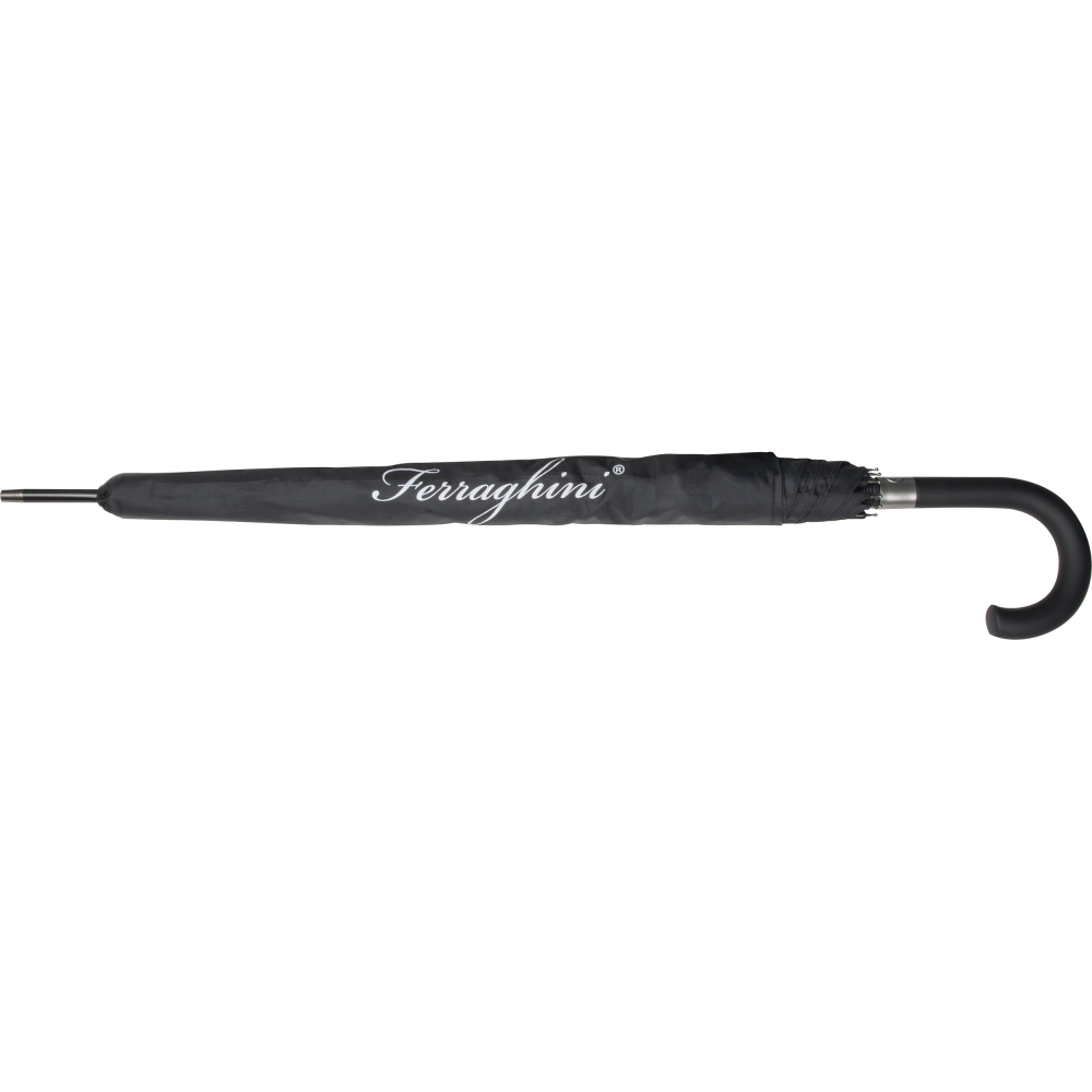 Artikel-Nr: MCMF12003Eleganter Stockschirm der Marke Ferraghini aus recyceltem Polyester und Karbongestänge mit passender Hülle und automatischer Öffnung. Ihre Werbung drucken wir auf ein Segment.