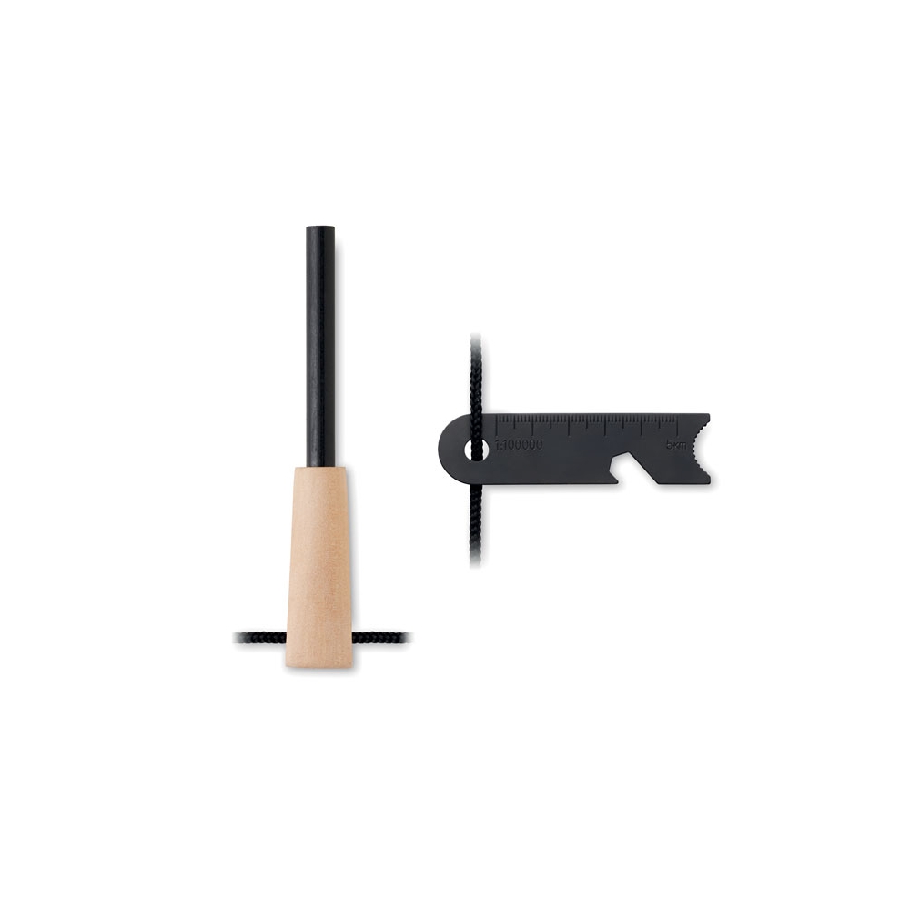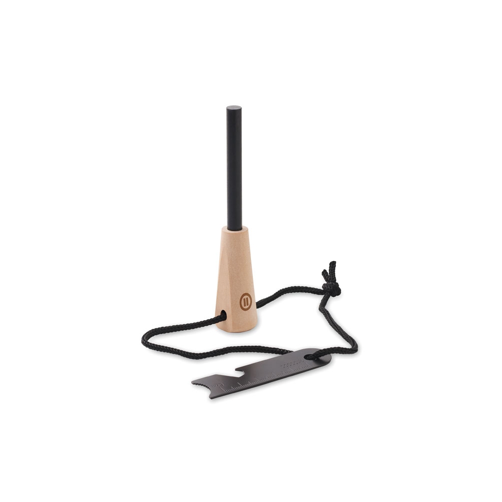 Artikel-Nr: OCBMO2417-40Feuerstarter-Set aus Kiefernholz und Edelstahl. Inkl. Feuerstarter, Mehrzweck-Schaber, Kapselheber, Lineal und Sechskantschlüssel.