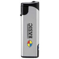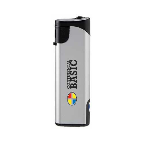 Nachfüllbares Piezo-Gasfeuerzeug mit blauem LED-Licht, Maße ca. 8 x 2,5 x 1 cm Farbe: silberfarben