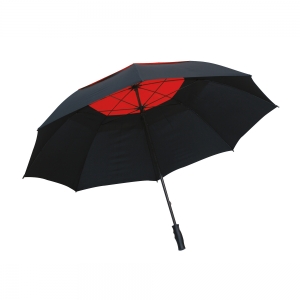 Artikel-Nr: INP56-0104172Fiberglas-Golfschirm MONSUN mit Ventilationssystem: Fiberglasstock und -speichen, Kunststofftips, Kunststoffgriff, Nylon-Bespannung, Schließband mit Klettverschluss