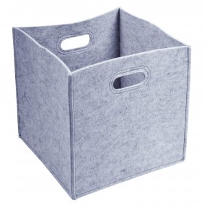 Artikel-Nr: INP56-0890041Filz-Aufbewahrungskorb HYGGE: praktischer Regalkorb mit 2 seitlichen Grifflöchern mit Zierstepperei im angesagten Scandi-Design zum einfachen Bewegen und Rausziehen, geräumiger Organizer für würfelförmige Bücherschränke und Regalsysteme, faltbar