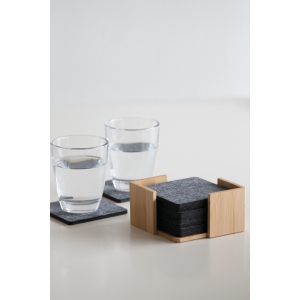 Artikel-Nr: INP56-0304449Filzuntersetzer ECO BASE: 10 Getränke-Untersetzer aus RPET-Filz im praktischen Bambus-Halter