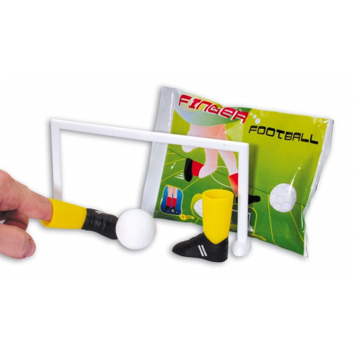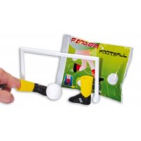 Spielbar auf Tisch und Boden. Ab 3 Jahren. Inhalt: 1 Paar Fußballstiefel für die Finger, 1 Ball, 1 Tor. Achtung! Nicht geeignet für Kinder unter 36 Monaten.