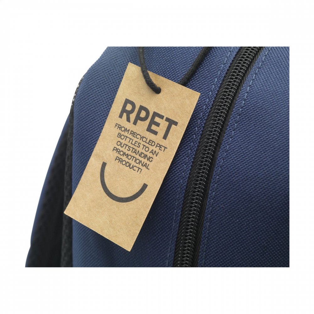 Artikel-Nr: CLP265532-005Rucksack aus robustem 600D RPET-Polyester. Mit einem großzügigen Fach mit stabilem Reißverschluss und einem mit schützendem Schaumstoff ausgestatteten Fach für den sicheren Transport eines Laptops bis zu 15,6 Zoll. Mit einem zusätzlichen Reißverschlussfach auf der Vorderseite und einer praktischen Trageschlaufe. Für zusätzlichen Tragekomfort sind die verstellbaren Schulterriemen und die Rückseite mit Schaumstoff ausgestattet. Die Rückseite ist mit Mesh-Gewebe gefertigt. GRS-zertifiziert. Recyceltes Material insgesamt: 98%. Fassungsvermögen ca. 15 Liter.