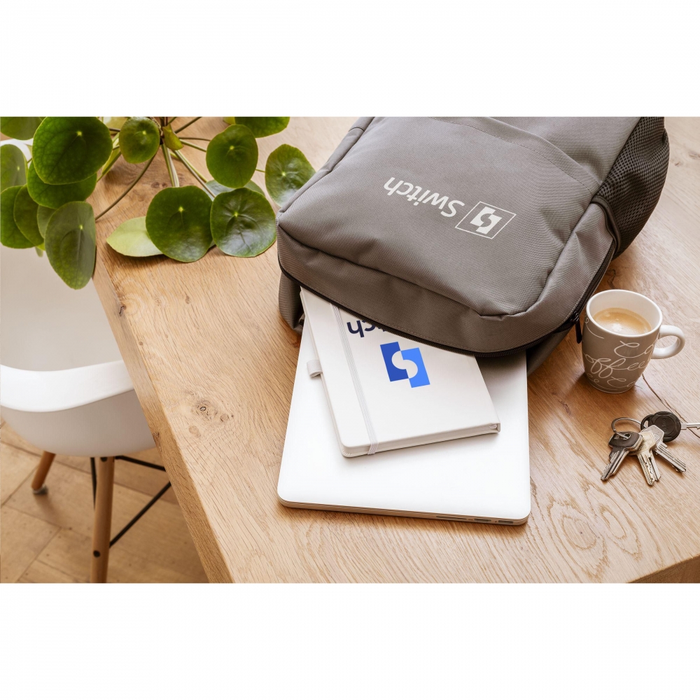 Artikel-Nr: CLP265532-003Rucksack aus robustem 600D RPET-Polyester. Mit einem großzügigen Fach mit stabilem Reißverschluss und einem mit schützendem Schaumstoff ausgestatteten Fach für den sicheren Transport eines Laptops bis zu 15,6 Zoll. Mit einem zusätzlichen Reißverschlussfach auf der Vorderseite und einer praktischen Trageschlaufe. Für zusätzlichen Tragekomfort sind die verstellbaren Schulterriemen und die Rückseite mit Schaumstoff ausgestattet. Die Rückseite ist mit Mesh-Gewebe gefertigt. GRS-zertifiziert. Recyceltes Material insgesamt: 98%. Fassungsvermögen ca. 15 Liter.