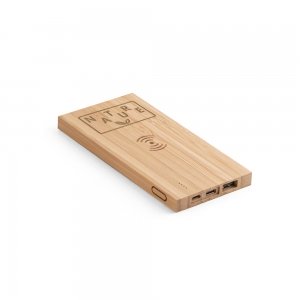 FITCH Powerbank 5'000 mAh mit 5W wireless Ladegerät aus Bambus