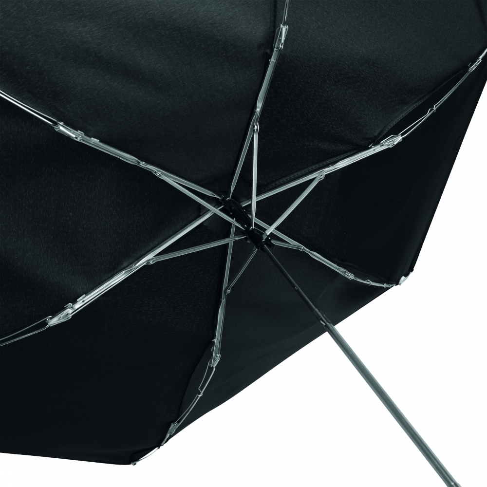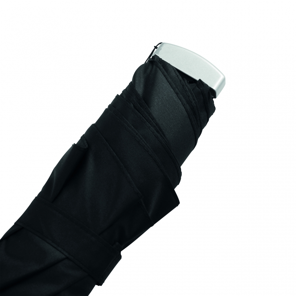 Artikel-Nr: INP56-0101143Super flacher Mini-Taschenschirm FLAT: in farblich abgestimmtem Futteral: 164g-leichtes Windproof-Gestell, 3-teiliger Aluminiumstock, mit Aluminium- / Fiberglasspeichen und Metalltips, Kunststoffgriff mit Handschlaufe, Polyester-Pongee-Bespannung, Schließband mit Klettverschluss
