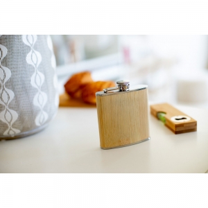 Artikel-Nr: AND846002Edelstahl-Flachmann mit Bambusmantel. Füllmenge: 175 ml.