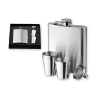 Set mit Flachmann aus Edelstahl (200 ml), Trichter und Becher (4x 20 ml) in Geschenkbox.