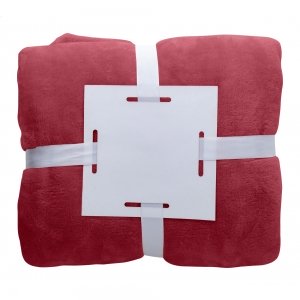 Artikel-Nr: AND861007-08Flannel-Fleecedecke, 280g / m². Gefaltet in weißer Schleife mit bedruckparer Karte.